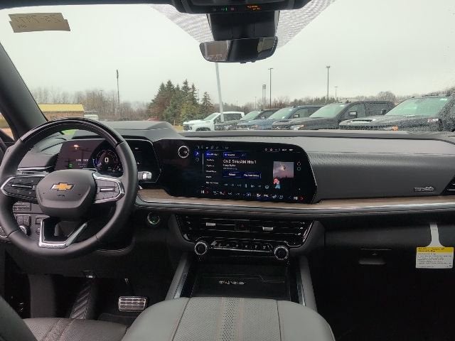 10 Speakers, 15 Diagonal Multi-Color Head-Up Display, 2-Speed Active Electronic AutoTrac Transfer Case, 22 6-Spoke Low Gloss Black Wheels, 3 Years of OnStar Services/Safety Services, 3.23 Rear Axle Ratio, 3rd Row 60/40 Power-Folding Split-Bench, 3rd row seats: split-bench, 4-Way Power Driver Lumbar Seat Adjuster, 4-Way Power Front Passenger Lumbar Seat Adjuster, 4-Wheel Disc Brakes, 8-Way Power Driver Seat Adjuster, 8-Way Power Front Passenger Seat Adjuster, ABS brakes, Adaptive suspension, Advanced Security Package, Advanced Trailering Package, Air Conditioning, Air Ride Adaptive Suspension, Alloy wheels, AM/FM radio: SiriusXM with 360L, Apple CarPlay/Android Auto, Auto High-beam Headlights, Auto-dimming door mirrors, Auto-dimming Rear-View mirror, Auto-leveling suspension, Automatic temperature control, AutoSense Hands-Free Power Liftgate, Black Center Caps, Black Illuminated Front Bowtie Emblem, Blind Zone Steering Assist with Trailering, Bose 10-Speaker Surround with CenterPoint, Brake assist, Bright Front and Rear Door Sill Plates, Bumpers: body-color, Cargo Security Shade, Chrome Door Handles with Body-Color Strip, Compass, Delay-off headlights, Driver door bin, Driver vanity mirror, Dual Exhaust System, Dual front impact airbags, Dual front side impact airbags, Dual-Pane Power Panoramic Sunroof, Electronic Stability Control, Emergency communication system: OnStar Services capable, Exterior Parking Camera Rear, Extra Capacity Cooling System, Four wheel independent suspension, Front 6-Piston Brembo Brake Upgrade, Front anti-roll bar, Front Bucket Seats, Front Center Armrest, Front dual zone A/C, Front fog lights, Front LED Fog Lamps, Front reading lights, Fully automatic headlights, Garage door transmitter, Get Active Package, Glass Breakage Sensor, Heads-Up Display, Heated 2nd Row Outboard Seats, Heated door mirrors, Heated Driver and Front Passenger Seats, Heated front seats, Heated Power-Adjustable Outside Mirrors, Heated rear seats, Heated Steering Wheel, Heated steering wheel, High Country Deluxe, Hill Descent Control, Hitch View with Pan/Zoom Image Adjustment, Illuminated entry, Illuminated Front and Rear Door Sill Plates, Illuminated Liftgate Sill Plate, Illuminated Mirror Chevrolet Emblem, Illumination Package, Inside Rearview Auo-Dimming Rear Camera Mirror, Integrated Trailer Brake Controller, LED Headlamps with LED Daytime Running Lamps, LED Tail Lamps, Low tire pressure warning, Magnetic Ride Control Suspension, Max Trailering Package, Memory seat, Memory Settings, Navigation system: Google built-in compatibility (select service plan required, terms and limitations apply), Occupant sensing airbag, Outside temperature display, Overhead airbag, Overhead console, Panic alarm, Passenger door bin, Passenger vanity mirror, Perforated Heated and Ventilated Seats, Perforated Leather Seating Surfaces, Power door mirrors, Power driver seat, Power Liftgate, Power passenger seat, Power Release 2nd Row Bucket Seats, Power steering, Power Tilt and Telescopic Steering Column, Power windows, Power-Retractable Assist Steps, Power-Sliding Center Floor Console, Preferred Equipment Group 3LZ, Radio data system, Radio: 17.7 Diagonal Advanced Color LCD Display, Rain sensing wipers, Rear air conditioning, Rear anti-roll bar, Rear Bumper Protector, Rear Power Liftgate, Rear reading lights, Rear Seat Media System, Rear window defroster, Rear window wiper, Remote keyless entry, Security system, Self-Powered Horn Theft-Deterrent Alarm System, SiriusXM with 360L Trial Subscription, Smart Trailer Integration Indicator, Speed control, Speed-sensing steering, Split folding rear seat, Spoiler, Sport Pedal Cover Kit, Steering wheel memory, Steering wheel mounted audio controls, Super Cruise, Tachometer, Technology & Entertainment Package, Technology Package, Telescoping steering w