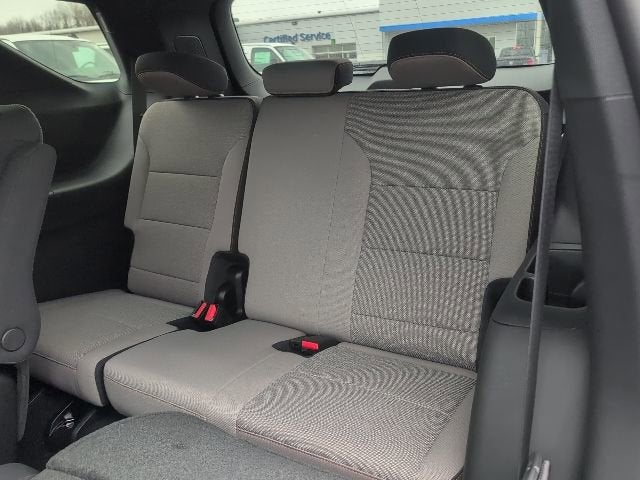 1st and 2nd Row All-Weather Floor Liners, 3rd Row All-Weather Floor Liner, 3rd row seats: split-bench, 4-Way Manual Front Passenger Seat Adjuster, 4-Wheel Disc Brakes, 6 Speakers, 6-Speaker Audio System Feature, 8-Way Power Driver Seat Adjuster, ABS brakes, Air Conditioning, Alloy wheels, AM/FM radio: SiriusXM with 360L, Apple CarPlay/Android Auto, Auto High-beam Headlights, Automatic temperature control, Black Bowtie, Brake assist, Bumpers: body-color, Child-Seat-Sensing Airbag, Compass, Delay-off headlights, Driver Confidence Package, Driver door bin, Driver vanity mirror, Dual front impact airbags, Dual front side impact airbags, Electronic Stability Control, Emergency communication system: OnStar, Floor Liner Package, Four wheel independent suspension, Front anti-roll bar, Front Bucket Seats, Front Center Armrest, Front dual zone A/C, Front reading lights, Fully automatic headlights, HD Surround Vision, Heated door mirrors, Heated Driver and Front Passenger Seats, Heated front seats, Heated steering wheel, Illuminated entry, Integrated Cargo Liner, Key Card, Low tire pressure warning, Navigation System, Occupant sensing airbag, Outside temperature display, Overhead airbag, Overhead console, Panic alarm, Passenger door bin, Passenger vanity mirror, Power door mirrors, Power driver seat, Power Liftgate, Power Outlet, Power steering, Power windows, Preferred Equipment Group 1LT, Premium Cloth Seat Trim, Radio data system, Radio: : Audio System w/17.7 Diagonal Display, Rear air conditioning, Rear anti-roll bar, Rear Camera Mirror, Rear Pedestrian Alert, Rear reading lights, Rear window defroster, Rear window wiper, Remote keyless entry, Security system, SiriusXM with 360L Trial Subscription, Speed control, Speed-sensing steering, Spoiler, Steering wheel mounted audio controls, Tachometer, Telescoping steering wheel, Tilt steering wheel, Traction control, Traffic Sign Recognition, Trip computer, Turn signal indicator mirrors, Variably intermittent wipers, Voltmeter, Wheels: 18 Grazen Metallic Machined-Face Aluminum.