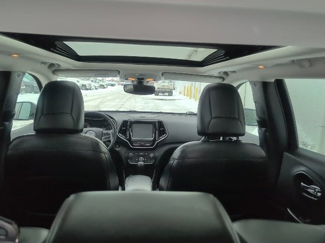 **Panoramic Sunroof** Clean CARFAX. 19/27 City/Highway MPG Diamond Black Crystal Pearlcoat 2019 Jeep Cherokee Limited 4WD 9-Speed 948TE Automatic 3.2L V6Power Front/Fixed Rear Full Sunroof, 1-Year SiriusXM Guardian Trial, 10 Speakers, 3.251 Axle Ratio, 4-Wheel Disc Brakes, 4G LTE Wi-Fi Hot Spot, 5-Year SiriusXM Traffic Service, 5-Year SiriusXM Travel Link Service, 8.4 Touchscreen Display, 9 Amplified Speakers w/Subwoofer (DISC), ABS brakes, Air Conditioning, Alloy wheels, AM/FM radio: SiriusXM, Anti-whiplash front head restraints, Apple CarPlay, Apple CarPlay/Android Auto, Audio memory, Auto-dimming Rear-View mirror, Automatic temperature control, AutoStick Automatic Transmission, Auxiliary Transmission Oil Cooler, Brake assist, Bumpers: body-color, Compass, Delay-off headlights, Driver door bin, Driver vanity mirror, Dual Bright Exhaust Tips, Dual front impact airbags, Dual front side impact airbags, Electronic Stability Control, Engine Oil Cooler, Exterior Mirrors Courtesy Lamps, Exterior Mirrors w/Supplemental Signals, For Details Visit DriveUconnect.com, Four wheel independent suspension, Front anti-roll bar, Front Bucket Seats, Front Center Armrest, Front dual zone A/C, Front fog lights, Front reading lights, Fully automatic headlights, Garage door transmitter, Glove Box Lamp, Glove Box w/Damped Door (DISC), Google Android Auto, GPS Antenna Input, GPS Navigation, HD Radio, Heated door mirrors, Heated front seats, Heated steering wheel, Illuminated entry, Integrated Voice Command w/Bluetooth®, Knee airbag, Leather Shift Knob, Low tire pressure warning, Memory seat, Normal Duty Suspension, Occupant sensing airbag, Outside temperature display, Overhead airbag, Overhead console, Panic alarm, ParkView Rear Back-Up Camera, Passenger door bin, Passenger vanity mirror, Power door mirrors, Power driver seat, Power Liftgate, Power passenger seat, Power steering, Power windows, Premium Leather Trimmed Bucket Seats, Quick Order Package 26G, Radio data system, Radio: Uconnect 4 w/8.4 Display, Radio: Uconnect 4C Nav w/8.4 Display, Rear anti-roll bar, Rear reading lights, Rear seat center armrest, Rear side impact airbag, Rear window defroster, Rear window wiper, Remote keyless entry, Roof rack: rails only, Security system, SiriusXM Satellite Radio, SiriusXM Traffic Plus, SiriusXM Travel Link, Speed control, Speed-sensing steering, Split folding rear seat, Spoiler, Steering wheel mounted audio controls, Stop-Start Multiple VSM System, Tachometer, Telescoping steering wheel, Tilt steering wheel, Traction control, Trip computer, Turn signal indicator mirrors, USB Host Flip, Variably intermittent wipers, Voltmeter, Wheels: 18 x 7 Polished/Painted Aluminum, Power Front/Fixed Rear Full Sunroof.