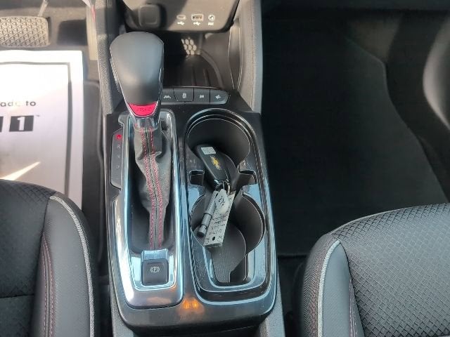 1 Type-A & 1 Type-C USB Charging-Only Ports, 120-Volt Power Outlet, 8 Diagonal Color Touchscreen Display, Cabin Humidity Sensor, Confidence II Package, Convenience Package, Driver & Front Passenger Illuminated Vanity Mirrors, Heated Steering Wheel, Inside Rear-View Auto-Dimming Mirror, Preferred Equipment Group 1RS, Rear Park Assist, Single-Zone Auto Climate Control Air Conditioning, 2-Way Adjustable Front Head Restraints, 2-Way Power Driver Lumbar Seat Adjuster, 4-Way Manual Front Passenger Seat Adjuster, 4-Wheel Disc Brakes, 5.45 Axle Ratio, 6 Speakers, 6-Speaker Audio System Feature, 7 Diagonal Color Touchscreen, 8-Way Power Driver Seat Adjuster, ABS brakes, Air Conditioning, Alloy wheels, AM/FM radio: SiriusXM, Auto High-beam Headlights, Brake assist, Bumpers: body-color, Cloth w/Leatherette Seat Trim, Compass, Delay-off headlights, Driver door bin, Driver vanity mirror, Dual front impact airbags, Dual front side impact airbags, Electronic Stability Control, Emergency communication system: OnStar and Chevrolet connected services capable, Exterior Parking Camera Rear, Flat-Folding Front Passenger Seatback, Front anti-roll bar, Front Bucket Seats, Front Center Armrest, Front fog lights, Front License Plate Bracket, Front reading lights, Front wheel independent suspension, Fully automatic headlights, Heated door mirrors, Heated Driver & Front Passenger Seats, Heated front seats, Heated steering wheel, Illuminated entry, Knee airbag, Leather Shift Knob, Leather steering wheel, Low tire pressure warning, Mosaic Black Metallic Two-Tone Roof, Not Equipped w/Rear Park Assist, Occupant sensing airbag, Overhead airbag, Overhead console, Panic alarm, Passenger door bin, Passenger vanity mirror, Power door mirrors, Power driver seat, Power steering, Power windows, Radio data system, Radio: Chevrolet Infotainment 3 System, Rear seat center armrest, Rear side impact airbag, Rear window defroster, Rear window wiper, Remote keyless entry, Ride & Handling Suspension, Security system, SiriusXM Radio, Speed control, Split folding rear seat, Spoiler, Steering wheel mounted audio controls, Tachometer, Telescoping steering wheel, Tilt steering wheel, Traction control, Trip computer, Variably intermittent wipers, Wheels: 18 High Gloss Black Machined Aluminum, Wireless Apple CarPlay/Android Auto, 1 Type-A & 1 Type-C USB Charging-Only Ports, 120-Volt Power Outlet, 8 Diagonal Color Touchscreen Display, Cabin Humidity Sensor, Confidence II Package, Convenience Package, Driver & Front Passenger Illuminated Vanity Mirrors, Heated Steering Wheel, Inside Rear-View Auto-Dimming Mirror, Preferred Equipment Group 1RS, Rear Park Assist, Single-Zone Auto Climate Control Air Conditioning.